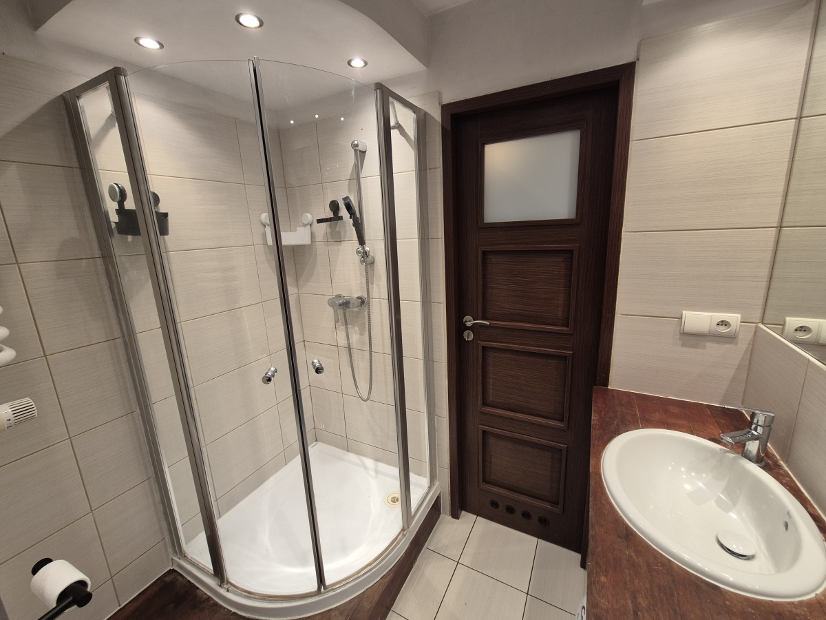 ŁAZIENKA (4m2): WC, kabina prysznicowa, pralka