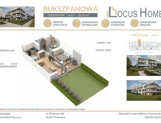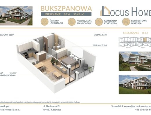 Ulica Gałczyńskiego to boczna, kameralna ulica z niskim natężeniem ruchu, idealna dla osób szukających ciszy i prywatności, a jednocześnie ceniących sobie szybki dostęp do głównych arterii miasta. W bezpośrednim sąsiedztwie znajdują się sklepy, przychodnie, szkoły, przystanki komunikacji miejskiej i Galeria Gemini Park. Z okien roztacza się piękny widok na pasmo Beskidu Śląskiego – to miejsce, w którym naprawdę czuć bliskość gór.