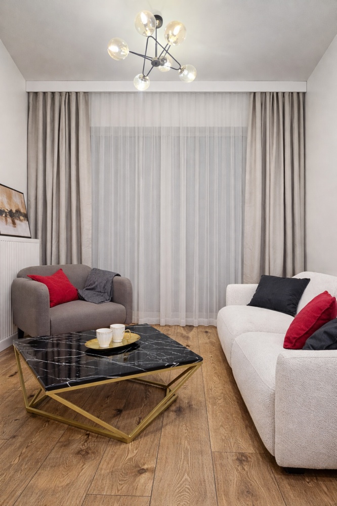 Na sprzedaż nowoczesny apartament w standardzie premium, w pełni wykończony pod klucz i gotowy do zamieszkania od zaraz. Wnętrze zaprojektowane spójnie i funkcjonalnie, z wykorzystaniem wysokiej jakości materiałów oraz mebli wykonywanych na wymiar.