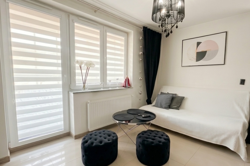 Okna wychodzą na trzy strony świata, dzięki czemu mieszkanie jest doskonale doświetlone. Zabudowany balkon z rozsuwanym przeszkleniem pozwala korzystać z dodatkowej przestrzeni niezależnie od pogody, idealne miejsce na poranną kawę, miniogród czy bezpieczną przestrzeń dla dzieci i pupili. Mieszkanie posiada klimatyzację.