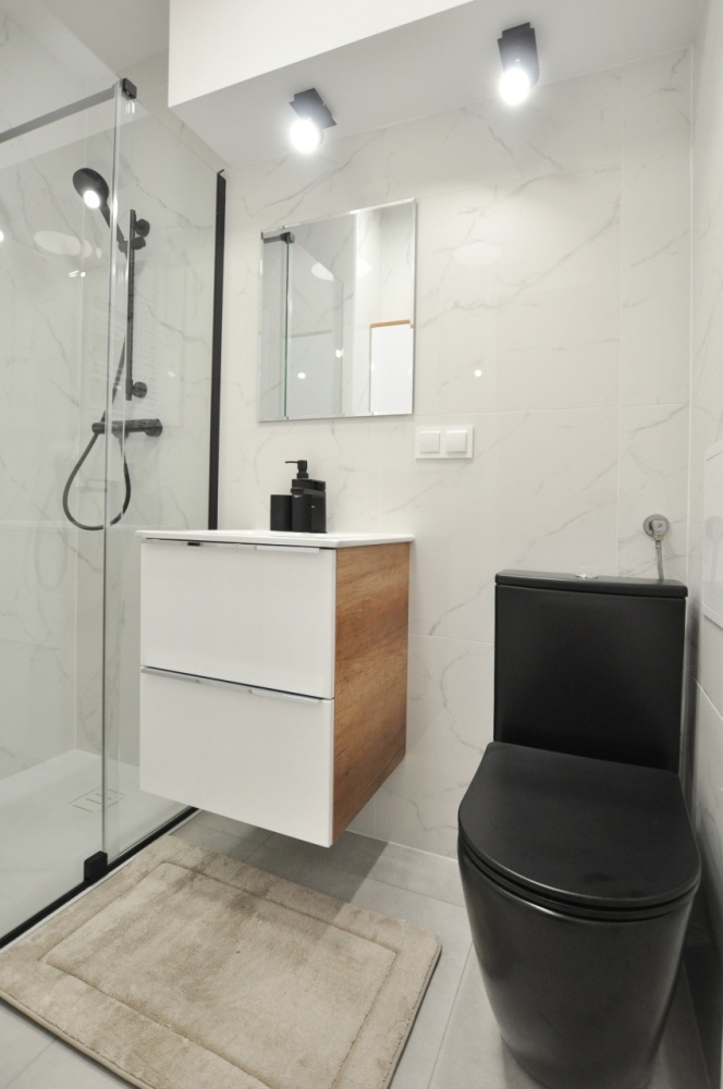 – mieszkanie wykończone w spójnym, nowoczesnym stylu: jasne kolory, świetne doświetlenie, czarne akcenty i wysokiej klasy detale