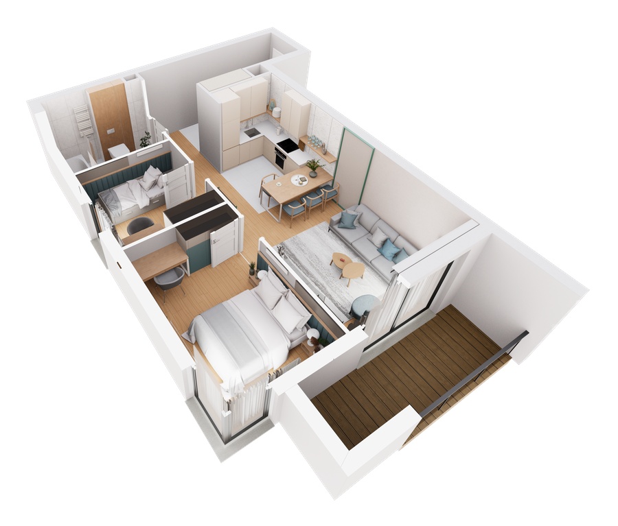 Ten apartament o powierzchni 63,13 m² to sprawdzony układ z dwiema komfortowymi sypialniami z biurkami, idealny dla studentów, osób pracujących zdalnie lub najemców długoterminowych. Funkcjonalna przestrzeń dzienna i loggia 7,39 m² tworzą wygodne i jasne wnętrze. Odbiór kluczy: wrzesień 2025.
