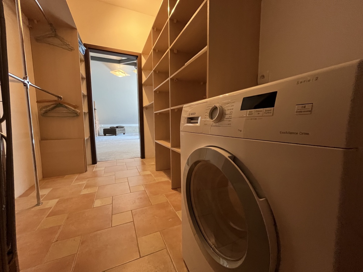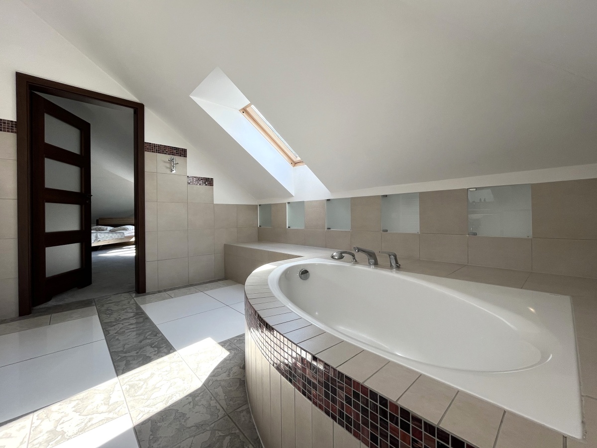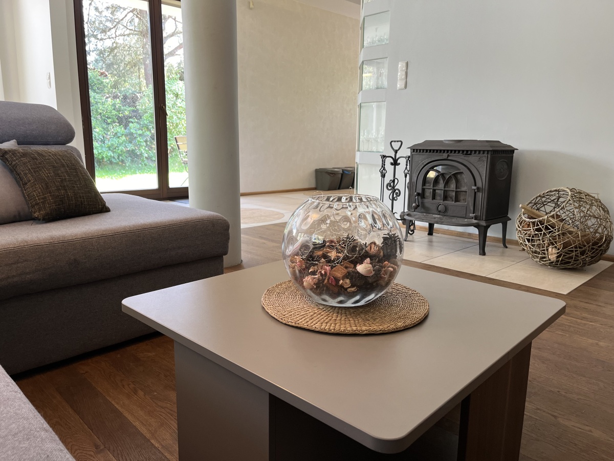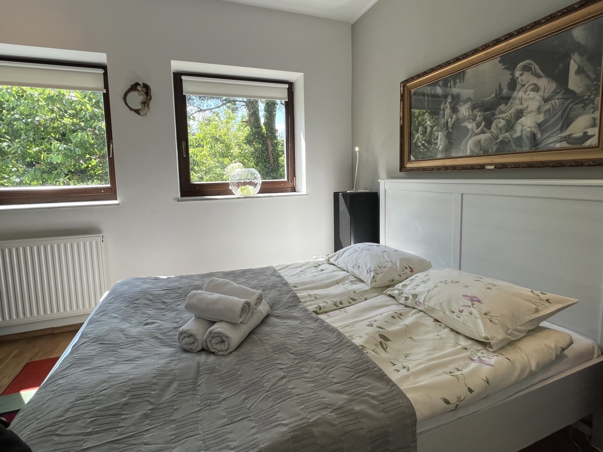 Dom o klimatycznym wnętrzu, widok z okien na cztery strony świata. Jasne pomieszczenia, nasłonecznione, w każdym pokoju widok na zieleń. Okna drewniane wysokiej jakości, na podłogach parkiet dębowy, panele w 2 małych sypialniach i wysokiej jakości glazura i terakota. Ściany o jasnej kolorystyce, wszystkie łazienki oraz część kuchenna w glazurze i terakocie. Kuchnia o pełnym wyposażeniu – okap, kuchenka, zmywarka, piekarnik, ekspres do kawy, zabudowa kuchenna wysokiej jakości. Teren ogrodzony, dojazd utwardzony.