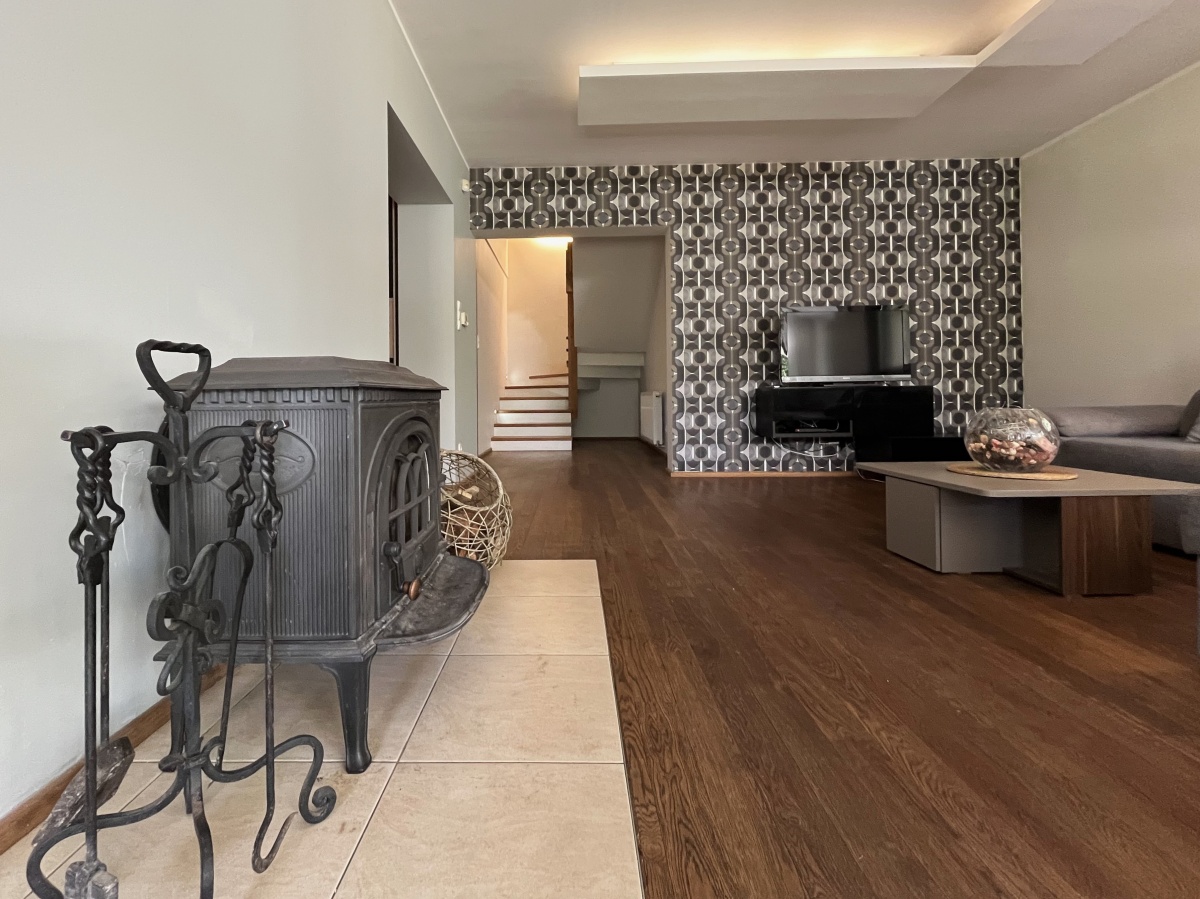 OGRZEWANIE: kuchnia, korytarz, część salonu pokryta kaflami, łazienki i garderoba – ogrzewanie podłogowe, w innych pomieszczeniach grzejniki – ogrzewanie na piec dwu-funkcyjny na gaz + wydajny kominek.