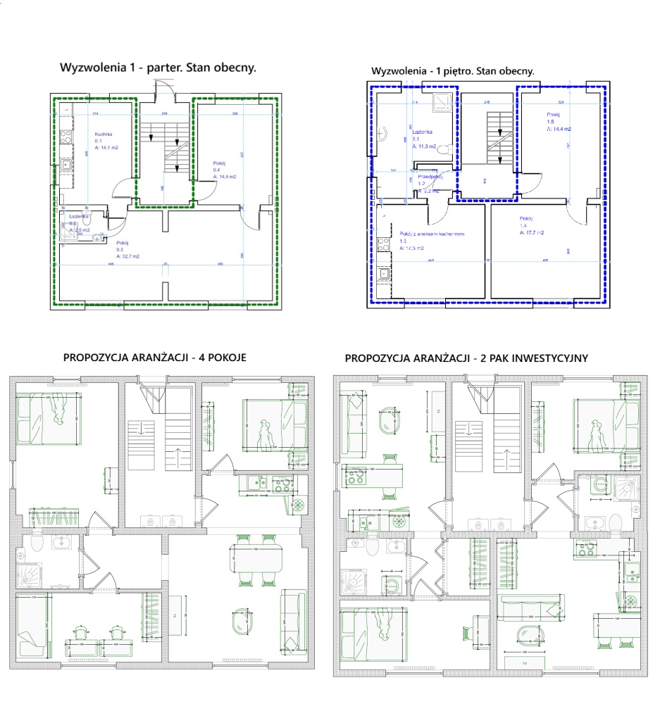 To idealna oferta dla osób szukających domu dla siebie + dla kogoś z rodziny, albo potrzebują miejsce na małą siedzibę swojej firmy.