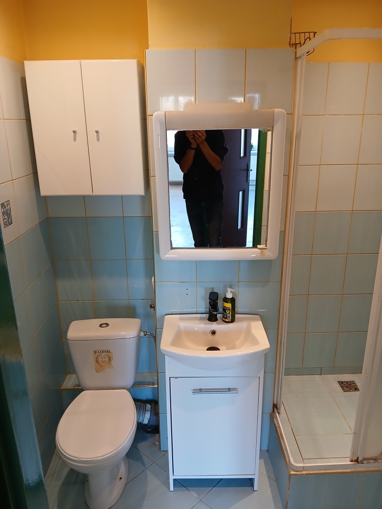 * Łazienka z prysznicem i miejscem na pralkę lub opcją wstawienia wanny