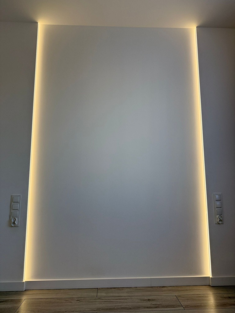 – Oświetlenie LED wpuszczone w ściany w całym mieszkaniu