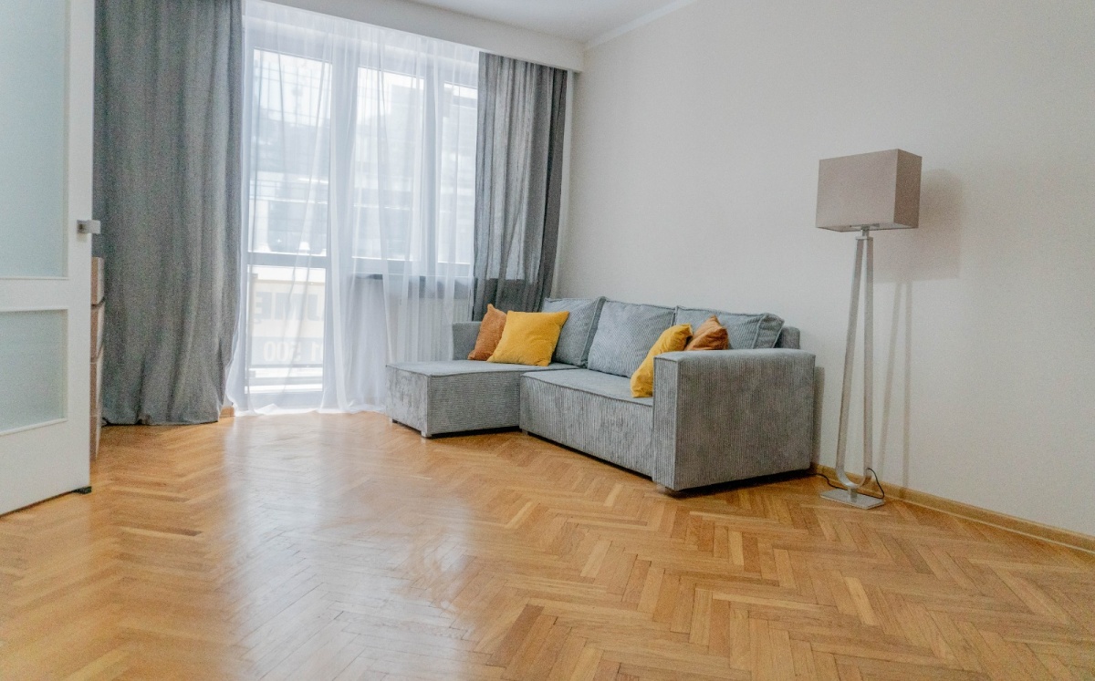 Pomimo centrum Warszawy w mieszkaniu jest bardzo cicho. Niestandardowa wysokość pomieszczeń 2,7 m daje poczucie prawdziwej przestrzeni w sercu miasta.