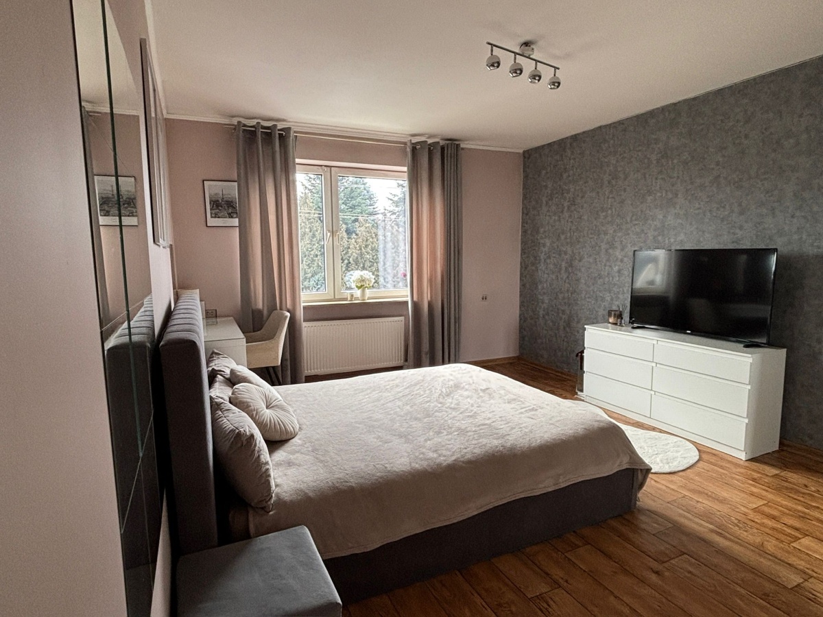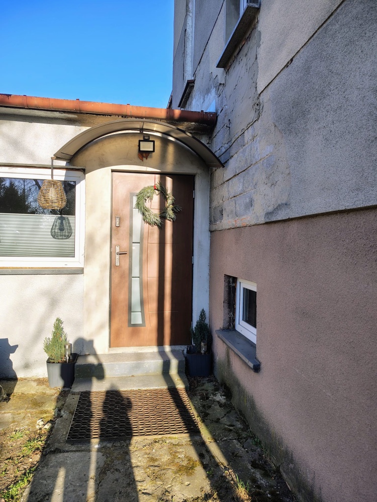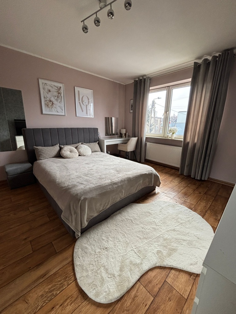 1. Parter – dwa duże pokoje, duży balkon, duża kuchnia, łazienka, w trakcie remontu, wymieniony piec gazowy dwufunkcyjny, nowe płytki i panele, okna PCW, sufity karton gips, nowe drzwi wewnętrzne.