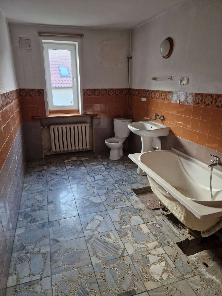 – Parter: toaleta, pomieszczenie gospodarcze, 2 pokoje, kuchnia, łazienka, weranda