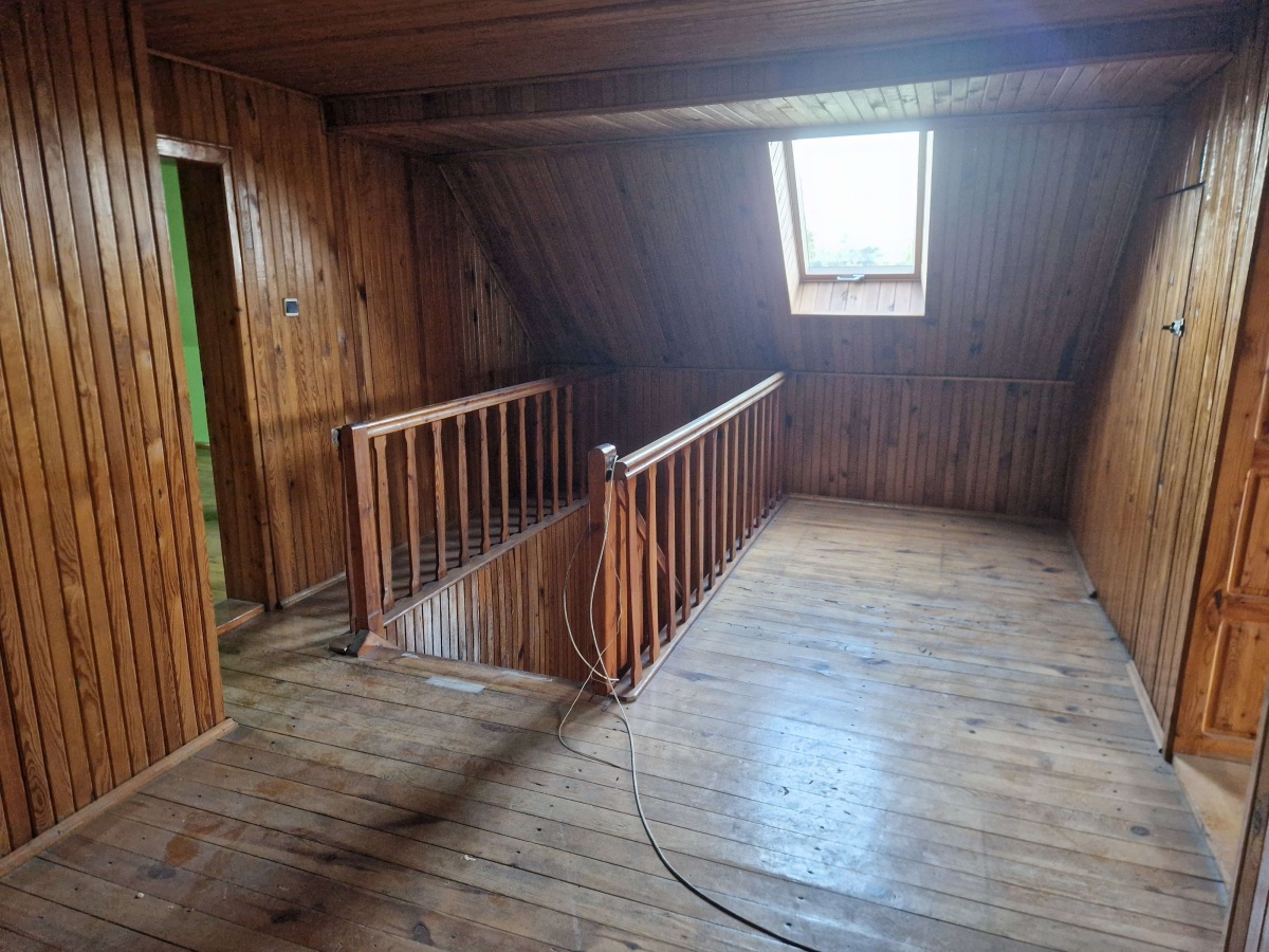 – Piętro 2: 3 pokoje, hol, dwa stryszki