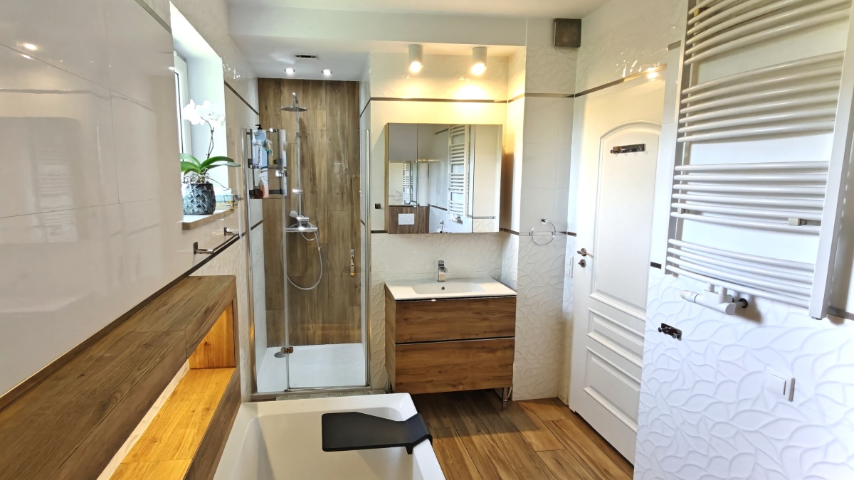 Dodatkowo w kuchni, łazience, wiatrołapie i w wyjściu tarasowym – ogrzewanie podłogowe !
