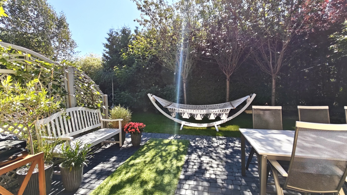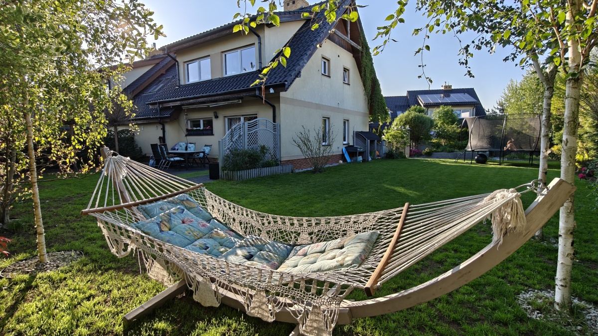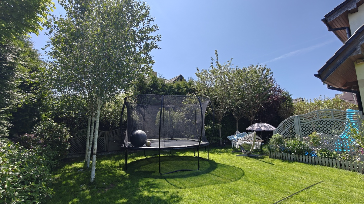 Ogród jest duży, pięknie zaaranżowany, zadbany i pomimo zabudowy bliźniaczej zapewnia pełny komfort. Unikalne zamknięte osiedle, oświetlone, z bramą wjazdową. Jest to idealne miejsce do wychowywania dzieci oraz regeneracji po pracy.