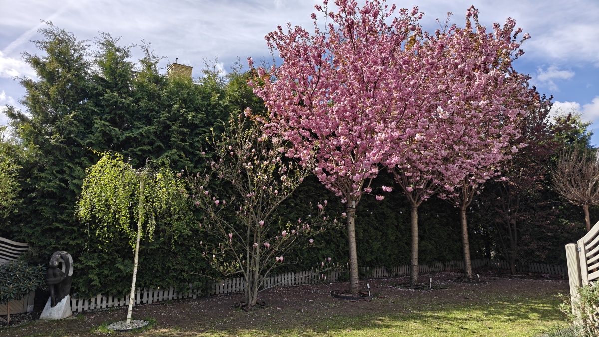 Powierzchnia ogrodu to ok 450 m, kształt litery L. Ogród posiada automatyczną instalację tryskaczową w całości wymieniono ziemię oraz położono siatkę na krety.