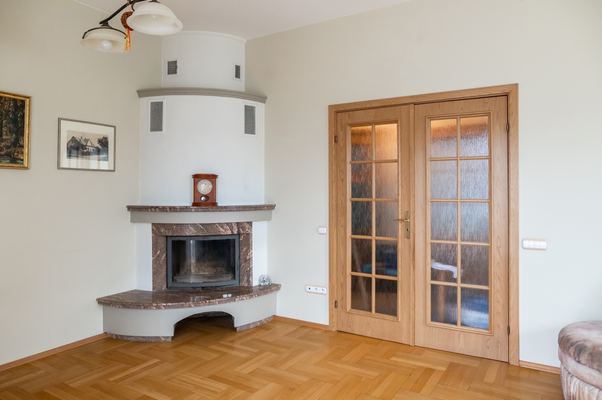 Zastosowano wysokiej jakości ceramikę na ścianach i podłogach w kuchni i łazienkach, dębowe parkiety w części dziennej, granit na kominkach, stolarkę okienną PCV i drewnianą stolarkę drzwiową.