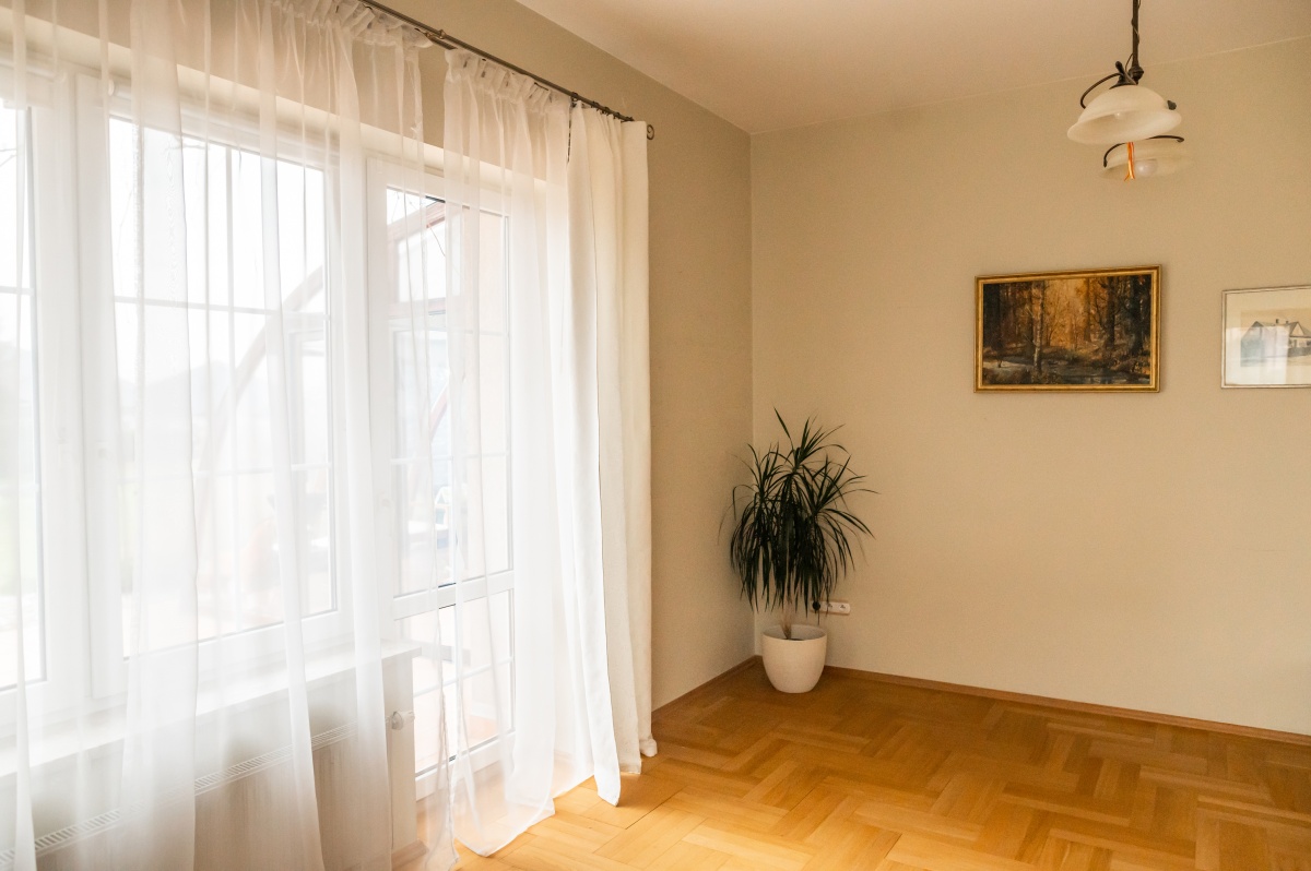 Przestronne jasne wnętrza, dzięki dużym oknom i użytej kolorystyce ścian i materiałów wykończeniowych.
