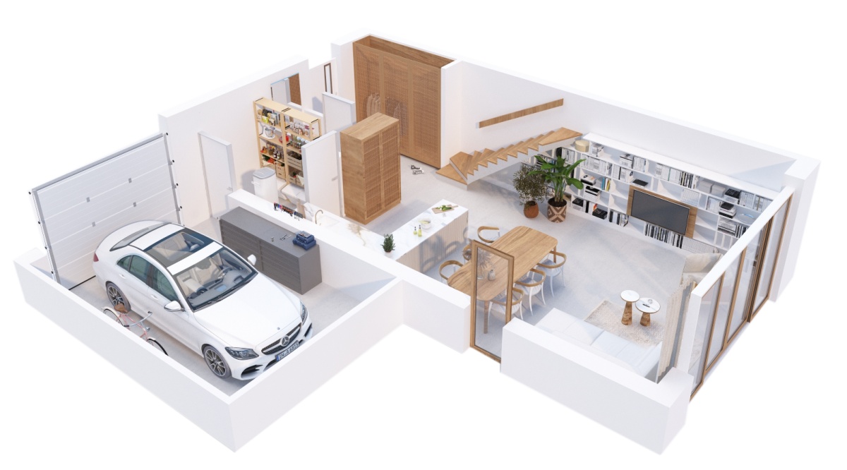 – przestronny salon z kuchnią i jadalnią na parterze