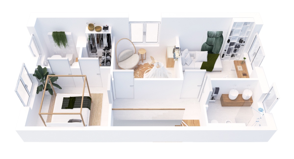 – łazienka + wc (5 i 2 m²), osobna garderoba