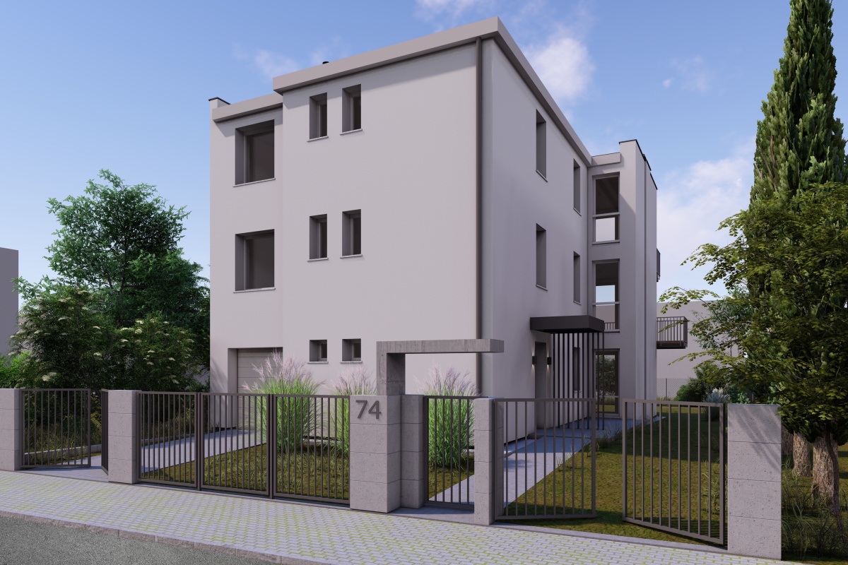 Budynek nawiązujący do modernizmu , o ponadczasowej prostej bryle z płaskim dachem i białą elewacją jest zrealizowany ze szczególnym naciskiem na funkcjonalność stref i układu pomieszczeń.