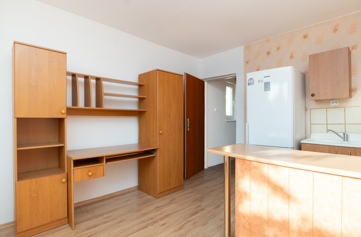Ta część jest połączona z wydzielonym mieszkaniem, która składa się z pokoju z aneksem kuchennym oraz łazienki.