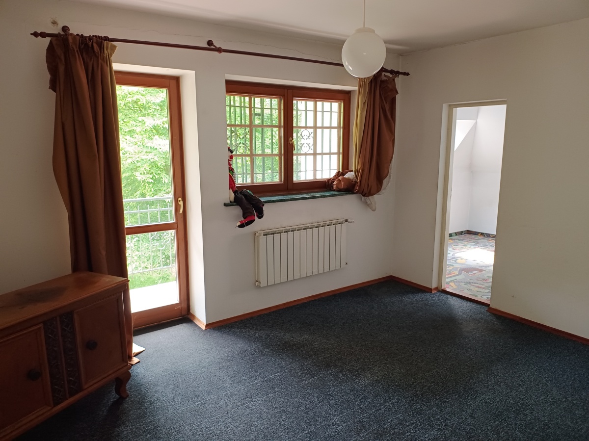 Piętro – duży widny salon, sypialnia z garderobą, dwie sypialnie, garderoba, rodzinna łazienka z wanną, wejście na duży strych.