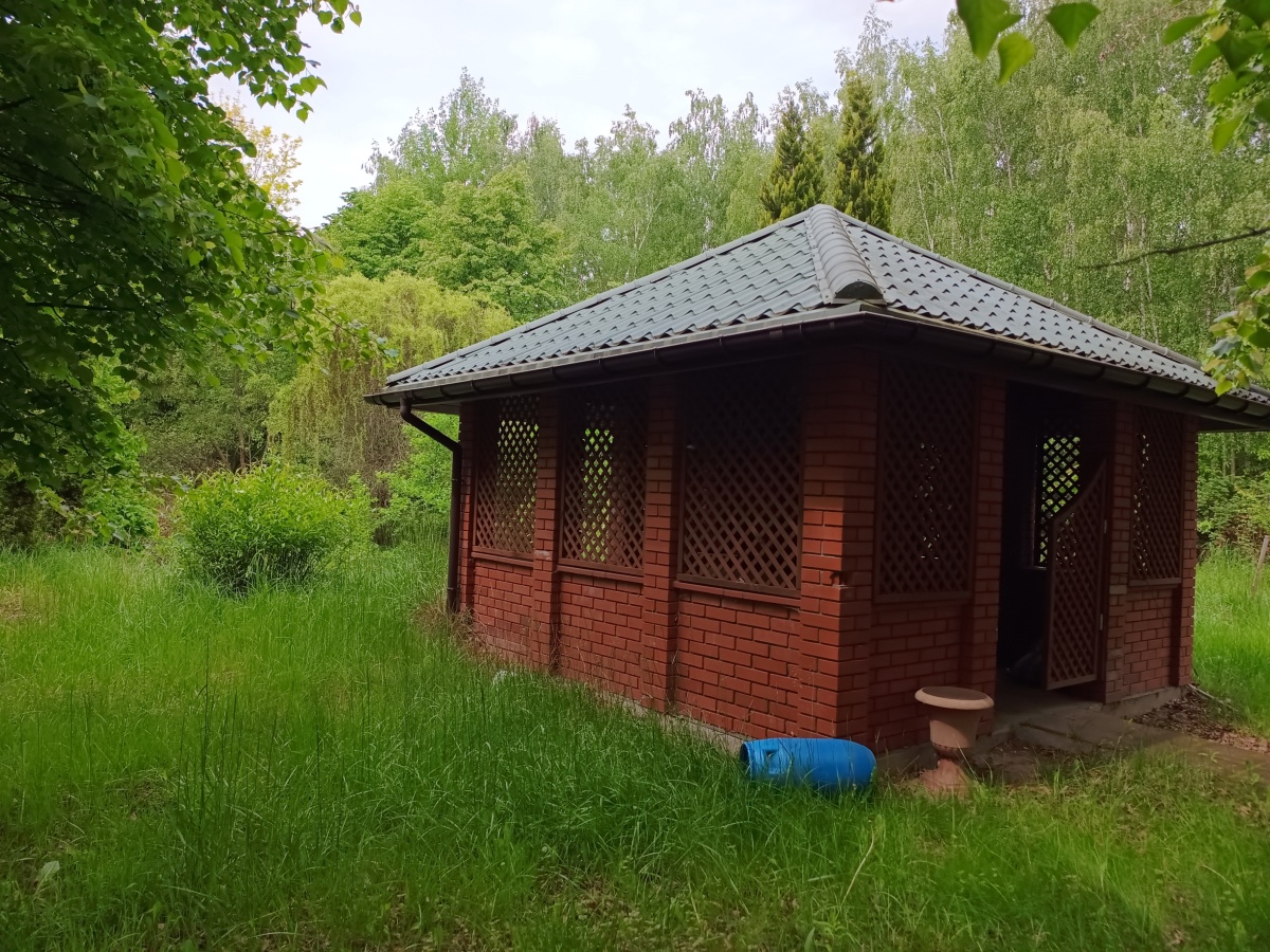 Dodatkowo na działce mamy altankę przy oczku wodnym, dodatkowy garaż przy budynku oraz blaszaną dużą szopę, w części leśnej dodatkowa altanka.