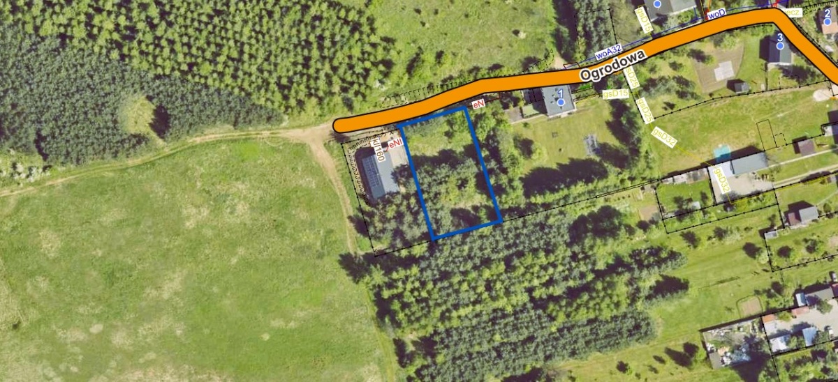 •Media: prąd – na działce; woda – na działce; kanalizacja – planowana przez gminę (obecnie możliwość montażu biologicznej oczyszczalni)