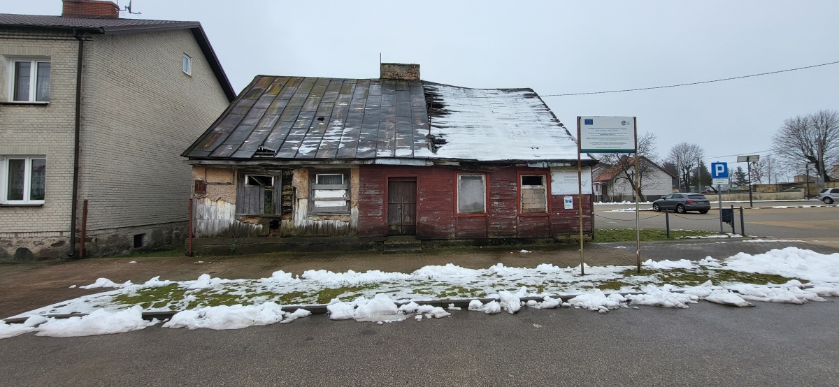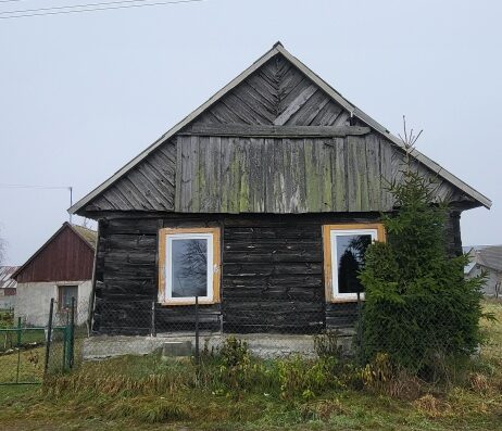 Działka zabudowana drewnianym domem jednorodzinnym o pow. 140m2 w stanie nadającym się raczej do rozbiórki.