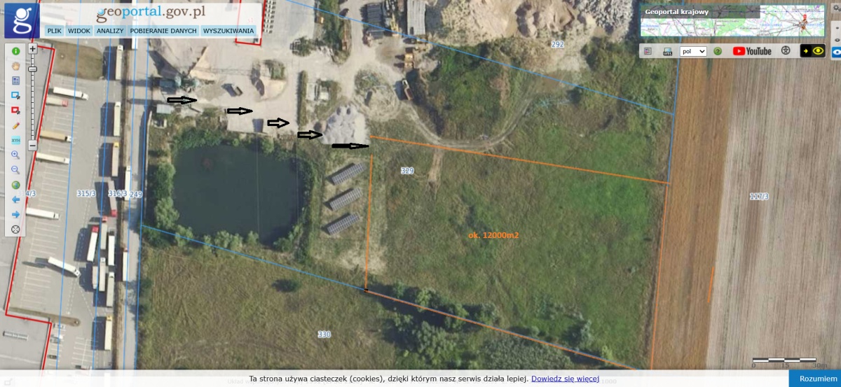 Dziełka nie jest utwardzona, ogrodzona. Do zagospodarowania przez ewentualnego najemcę we własnym zakresie. Dojazd do działki drogą asfaltową i betonową. Możliwe podłączenie do energii elektrycznej na podlicznik max 20Kw.