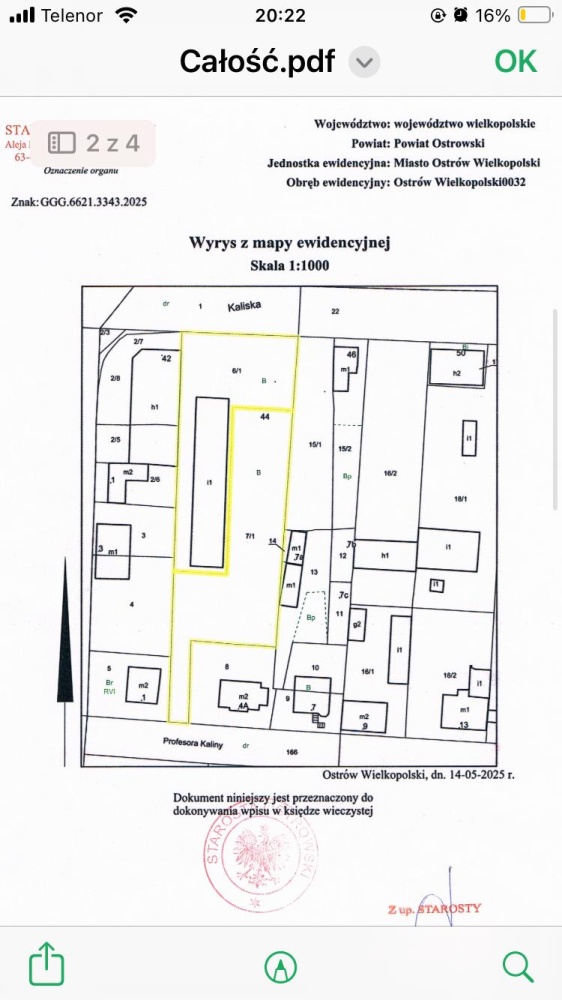 Na sprzedaż teren o powierzchni 3 401 m², położony w ścisłym centrum Ostrowa Wielkopolskiego przy ulicy Kaliskiej 44 – idealny pod inwestycję komercyjną: market, sklep wielkopowierzchniowy, obiekt usługowy lub logistyczny. Cena ofertowa: 2 600 000 zł.