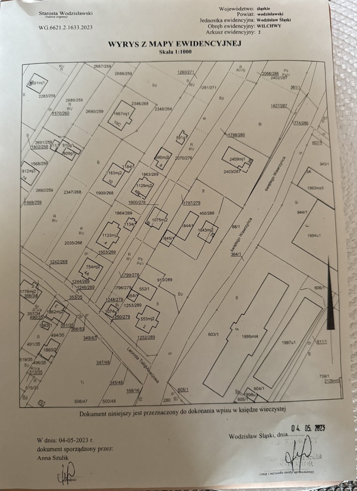 dwa budynki (nr 1845/1 oraz 1844/1) zostały już wyburzone,