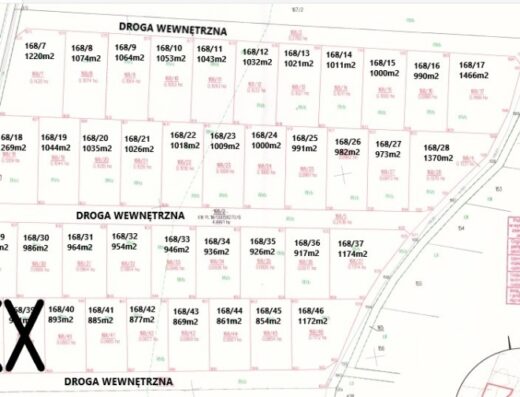 Idealne metraże zarówno pod budowę domu jednorodzinnego, jak i pod inwestycję. Aktualnie działki są w trakcie podziału. Numer działki przed podziałem 72.