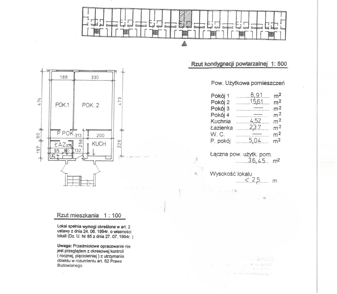 Miesięczny czynsz administracyjny wynosi 506,23 zł w tym m.in. zaliczka na ogrzewanie, zaliczka na podgrzanie wody 2,4 m3, zaliczka na zimną wodę 3 m3 oraz zaliczka wywóz nieczystości 11,67 zł uzależniona od zużycia wody – ustalana indywidualnie.