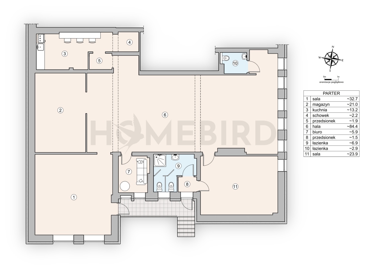 – pomieszczenia socjalne: kuchnia i łazienka.