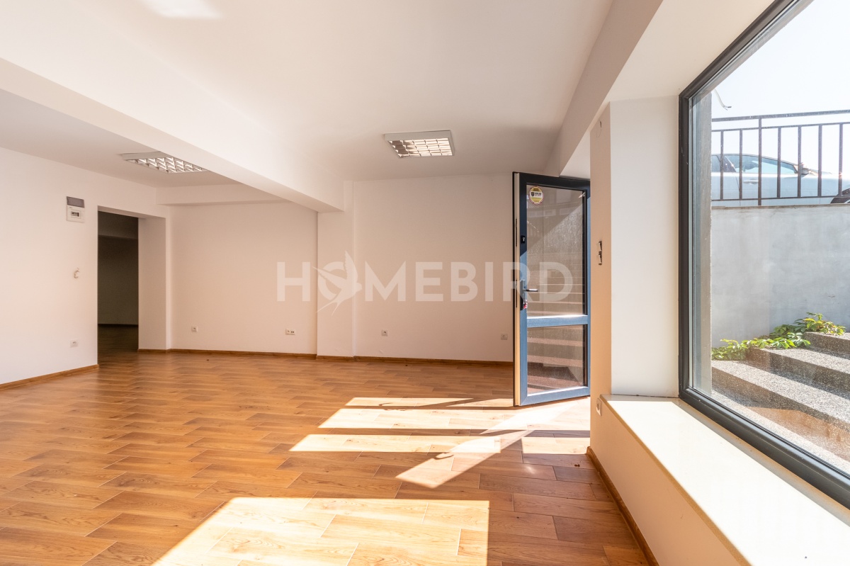 a) pomieszczenia o charakterze usługowo-biurowym, z wejściem, które prowadzi przez przeszklone drzwi (po schodach zewnętrznych, z placu przed budynkiem), o łącznej powierzchni 94,75m2, w pełni wykończone zgodnie z ich przeznaczeniem: