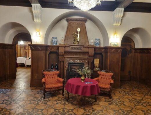 -wspólnej jadalni z kominkiem,