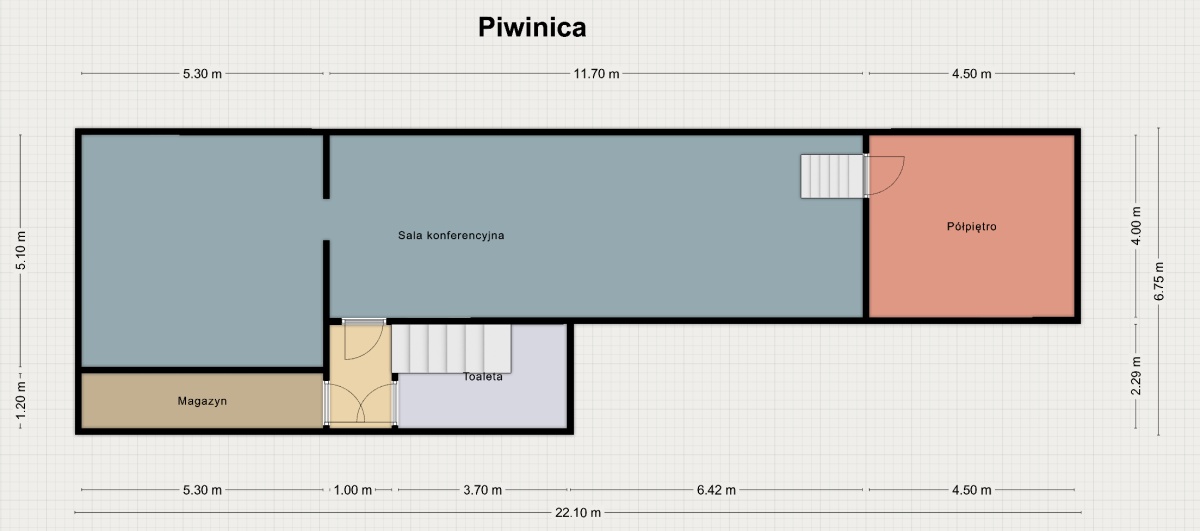 Klimatyczna przestrzeń z salą konferencyjną, biurem i magazynami. Idealna na winiarnię, klub lub zaplecze dla pozostałych lokali.