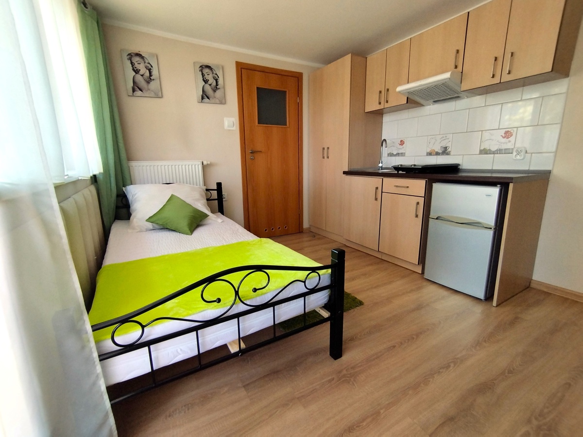 Mieszkanie w pełni wyposażone i umeblowane . TV cyfrowy Panasonic z aktualnym dekoderem , router WIFI – Internet po kablu lub WIFI .Do dyspozycji płyta indukcyjna dwustanowiskowa, lodówka , suszarka do naczyń, zasłony, firanki , krzesła , pojemna szafa na ubrania, dywanik , biurko z szufladami, wygodne łóżko z komfortowym materacem