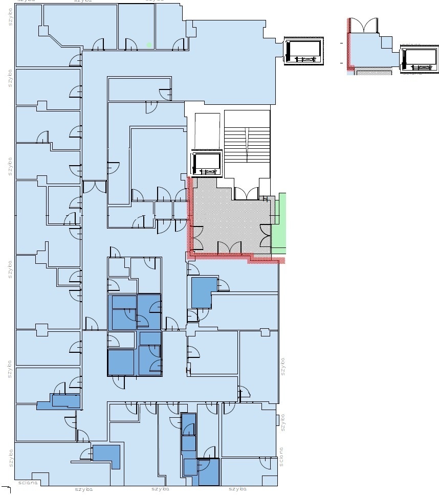 Do wynajęcia lokal usługowy o układzie gabinetowym i powierzchni 693,56 m2, zlokalizowany na I piętrze biurowca na ul. Wadowickiej 6. Lokal składa się z 34 pomieszczeń różnej wielkości oraz 8 toalet. Lokal posiada prywatną, dedykowaną sobie windę oraz recepcję. Wcześniej mieściła się w nim placówka medyczna, więc większość pomieszczeń jest wyposażona w umywalki z dostępem do bieżącej wody. Kilka pomieszczeń ma własne toalety.