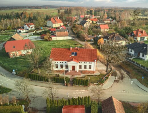 Wyposażony w prąd 3 fazowy, przyłącze wody, szambo betonowe.
