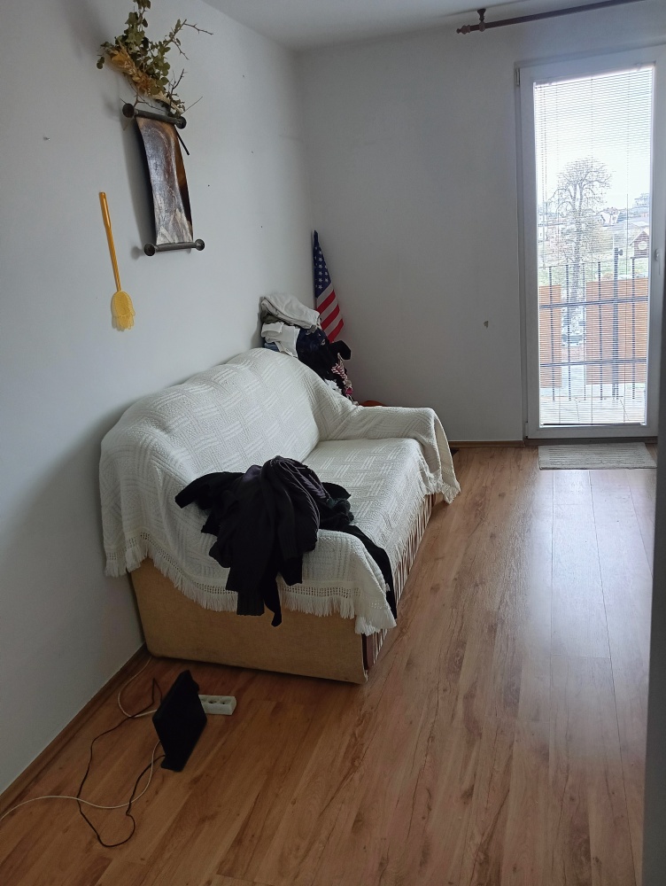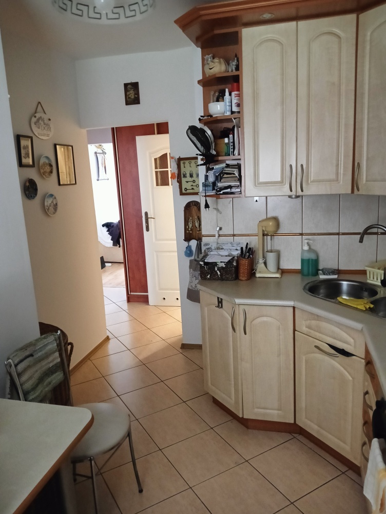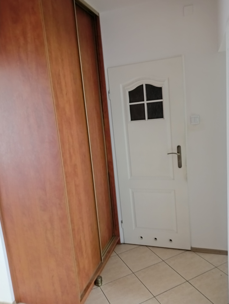 Przedpokój zabudowany szafami, solidne drzwi wejściowe.