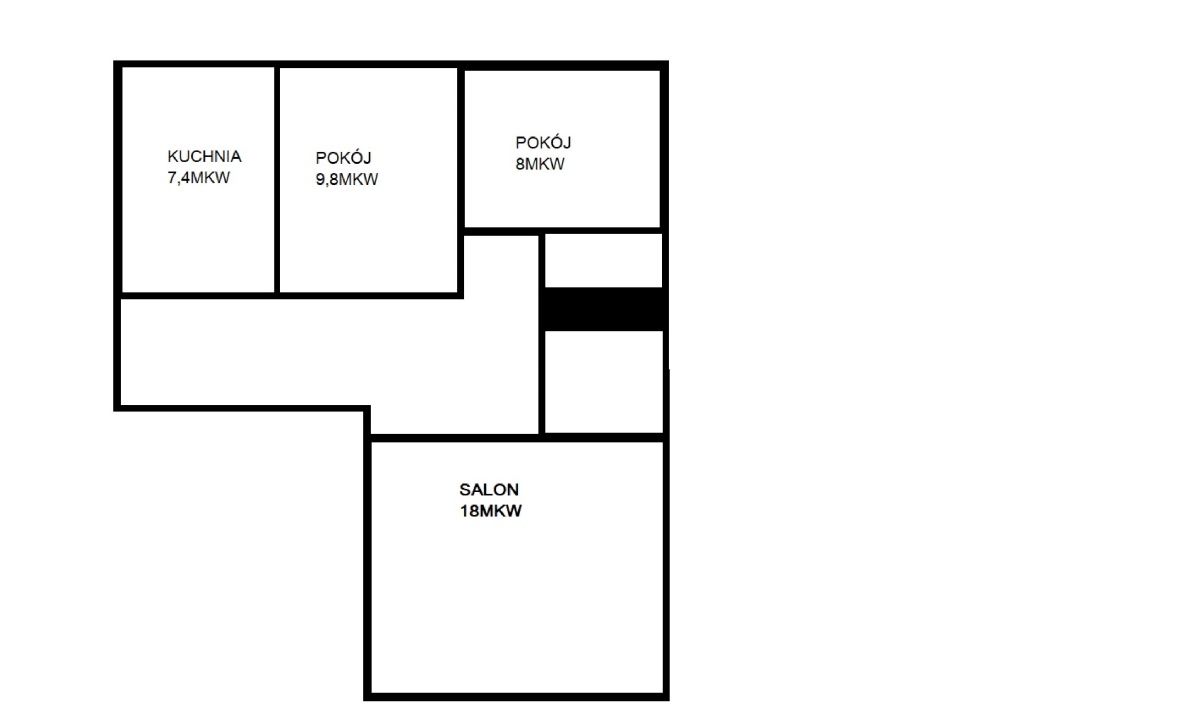 Mieszkanie składa się z 3 pokoi, oddzielnej kuchni, łazienki, WC oraz przedpokoju. Do