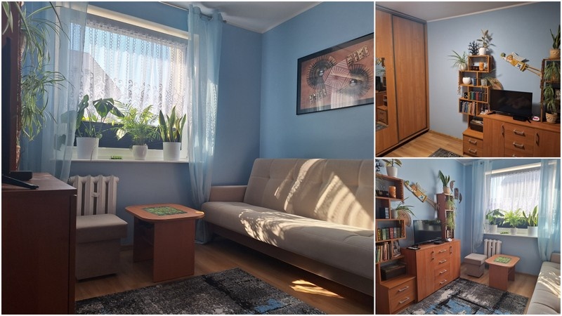 Mieszkanie usytuowane jest na bezpiecznym pierwszym piętrze /wygodne, niskie stopnie schodów/ w bloku z roku 1989, /2 lata temu remont generalny mieszkania/, dwustronne, dobrze nasłonecznione /latem w mieszkaniu lekki chłodek, zimą słońce, jako dodatkowe źródło ciepła/. Mieszkalnie o metrażu 74m2 składa się z 4 pokoi, / *salon 19m2 *sypialnia 12,50m2 *sypialnia 11,80m2 *sypialnia 8,60 *kuchnia 10,40m2 *łazienka 4,30m2 *przedpokój 7,4 m2 . W przedpokoju 2 szafy, w 3 pokojach również pojemne szafy, kuchnia z nową zabudową wyposażona w nowy sprzęt elektroniczny /piekarnik, płyta ind. lodówka/. Całe wyposażenie w cenie mieszkania. Do lokalu przynależą 2 piwnice o łącznej powierzchni 11,32m2, oraz 1/3 strychu znajdującego się na poddaszu budynku. Wielkim atutem jest parking przed blokiem przynależny tylko dla mieszkańców i bezproblemowe parkowanie. Blok usytuowany na osiedlu zamkniętym – szlaban.