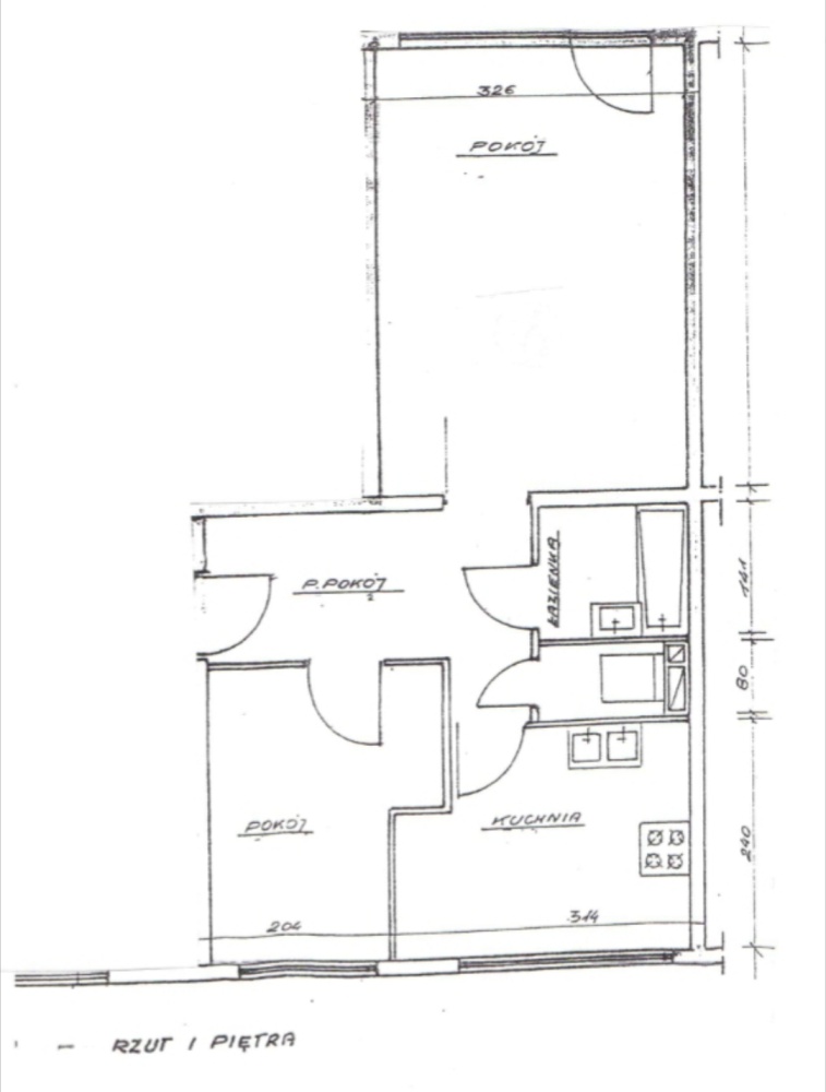 Mieszkanie o powierzchni 39 m2, usytuowane na pierwszym piętrze czteropiętrowego bloku .
