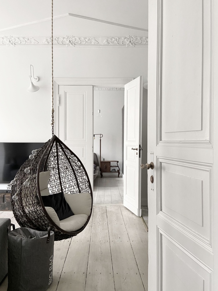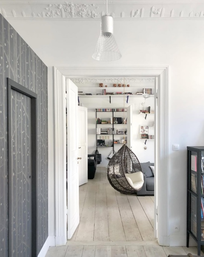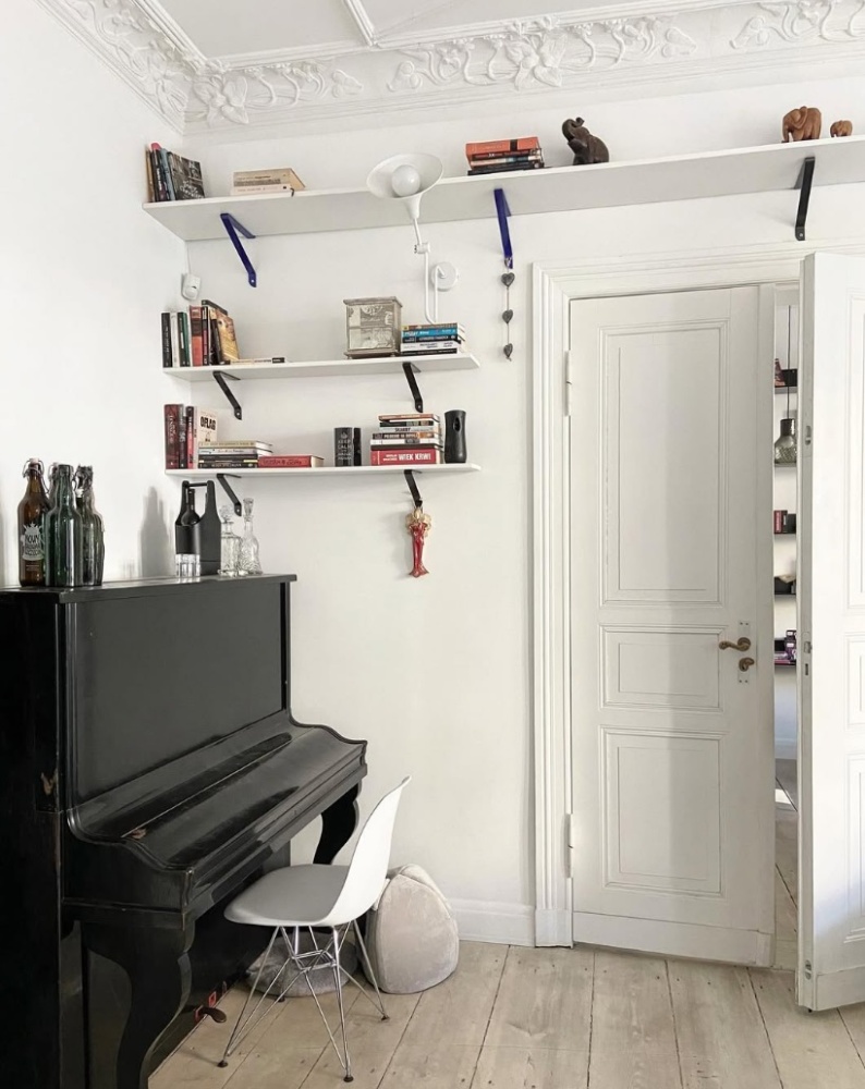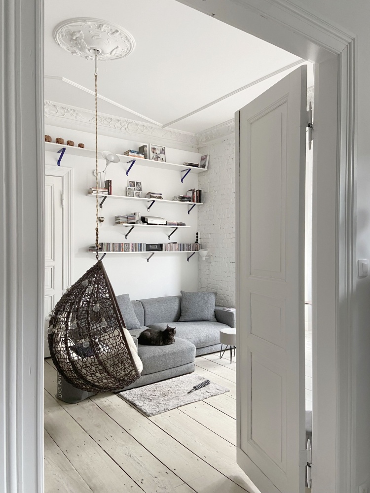 To mieszkanie z historią. Przed wojną mieszkał w nim z rodziną niemiecki właściciel kamienicy, którego potomków mieliśmy nawet okazję poznać. Było to jego prywatne mieszkanie, położone na najlepszej kondygnacji, pozostałe mieszkania w budynku były przez niego wynajmowane. Czarne pianino widoczne na zdjęciu, pochodzące z przedwojennej szczecińskiej manufaktury pianin i fortepianów G. Wolkenhauer, należało do właścicieli, stanowi więc integralną część tego mieszkania.