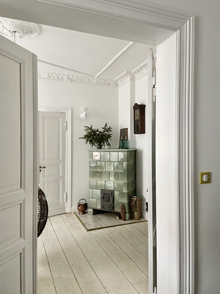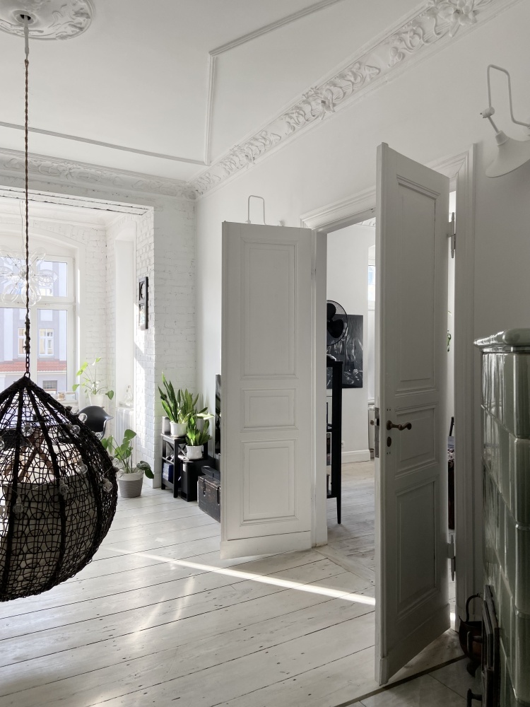 Mieszkanie przeszło gruntowny remont, dostosowaliśmy je też funkcjonalnie do współczesnego trybu życia. Wymieniliśmy m.in. okna- na ciche 3 szybowe, wszystkie instalacje i piony sanitarne, nawet częściowo tynki i strop. Zachowaliśmy i odrestaurowaliśmy historyczne elementy- drewniane podłogi z szerokich desek, wszystkie drzwi wewnętrzne oraz zewnętrzne, sztukaterie sufitowe. Zachował się także oryginalny piec kaflowy, przełożony przez zduna stanowi nie tylko wyjątkową dekorację, ale może być również źródłem ciepła w długie zimowe wieczory.