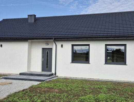 Drzwi wewnętrzne, zewnętrzne oraz okna w całym domu wykonane z aluminium co zwiększa poziom bezpieczeństwa oraz podnosi standard wykonania.
