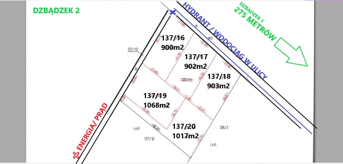 Media: woda i prąd w ulicy przy działce.