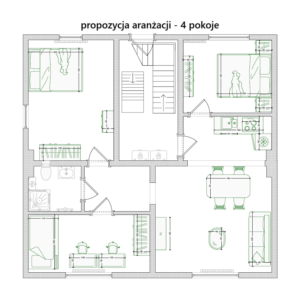 Nie chcemy tego robić, bo nie znamy Twojego stylu życia, preferencji i potrzeb. Wolimy Wam zostawić decyzję jak ma wyglądać wnętrze.