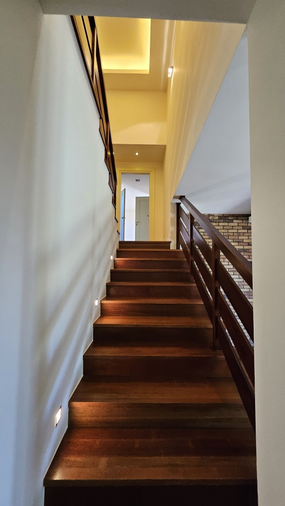 Dom wolnostojący, przestronny, komfortowy, położony w spokojnej części Łomianek Dolnych, przy ul. Karola Szymanowskiego 30. To moja ocena, więc może subiektywna, ale dom jest przepiękny, w stylu śródziemnomorskim. Układ pomieszczeń jest bardzo funkcjonalny. Całe wnętrze odnowione, całkiem nowa kuchnia. Od remontu nikt nie mieszkał więc można powiedzieć, że wnętrze prawie jak nowe. Gotowy do zamieszkania. Powierzchnia mieszkalna około 295 m², całkowita z garażem około 330 m². Foremna działka w kształcie prostokąta o powierzchni 1211 m². W ogrodzie piękne, dojrzałe rośliny, ukazujące swój urok w sezonie wiosenno-letnim, dające dużo intymności. Automatyczne podlewanie ogrodu. Garaż na dwa auta. Dojazd drogą asfaltową, wszystkie media. Dom idealny dla kogoś kto lubi przestrzeń, dla rodziny, do pracy zdalnej. W sumie 7 pokojów, otwarty salon z jadalnią i aneksem kuchennym, pralnia, miejsce na siłownię i saunę, garderoba przy sypialni głównej, dwie łazienki na piętrze, toaleta na parterze, poddasze użytkowe. Cicha okolica, dobry dojazd do Warszawy.